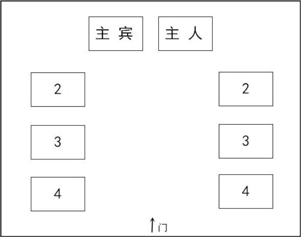 a)主人和主賓座位居中,主方位于進(jìn)門右側(cè),客方位于進(jìn)門左側(cè);